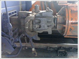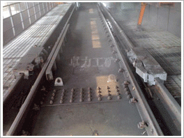 翻車機推車器由液壓馬達控制,雙側推車臂推送車輛踏面。推車器推送車輛時先低速后