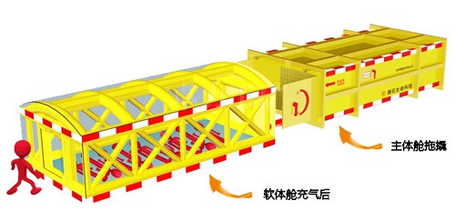 現(xiàn)國內(nèi)礦山安全避險(xiǎn)無很好的措施。為在很好保護(hù)災(zāi)變發(fā)生后人員安全,設(shè)計(jì)一種鋼結(jié)構(gòu)救生艙,艙內(nèi)配置飲用水和食物。用于礦難發(fā)生后的緊急避難,放置于礦山井下作業(yè)面附近。在遇險(xiǎn)人員無法撤離危險(xiǎn)區(qū)域時(shí)可以迅速躲進(jìn)救生艙,救生艙無需外部能源補(bǔ)給,就可以為幸存人員躲避有毒有害氣體、濃煙煙塵及氧氣缺乏等危害,提供一段時(shí)間的生命生存保障。對于挽救井下幸存人員的生命具有積極而重大的意義。