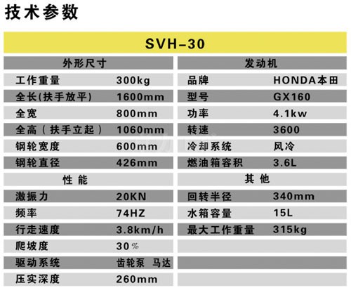 手扶式單鋼輪壓路機SVH-30用途: 用于市政、公路路面養(yǎng)護作業(yè),也適用于溝槽基礎、管溝回填、建筑施工及廣場修筑工程中的壓實作業(yè),碾壓草坪等。 性能特點:◆正宗HONDA(本田)動力,名牌品質保證,性能優(yōu)越,啟動容易;◆作業(yè)半徑小,可在極其狹窄的區(qū)域內作···