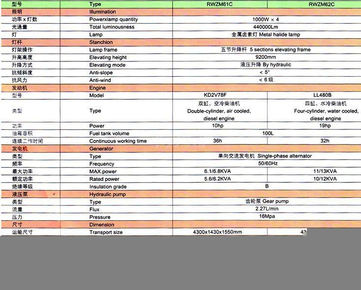 備選功能:燈架電動翻轉(zhuǎn)、遙控改變投射角度、尾部剎車燈、副油箱、110V外接電源插頭等